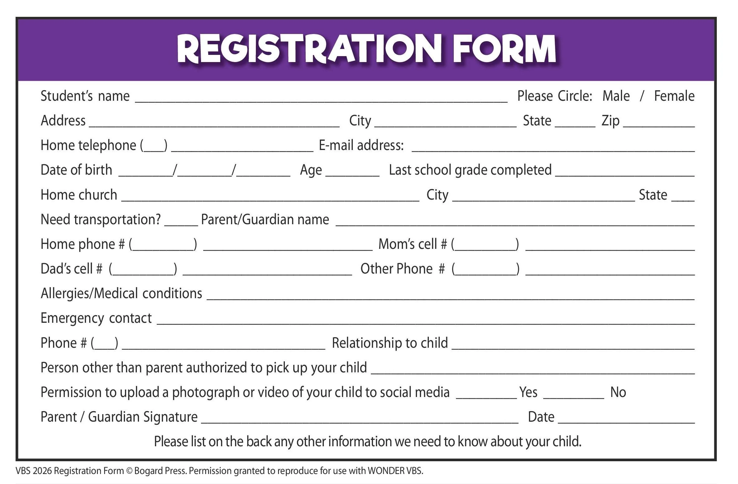 We would love to have you child/children join us for Vacation Bible School this year. Please complete the form for each child attending and mail to: